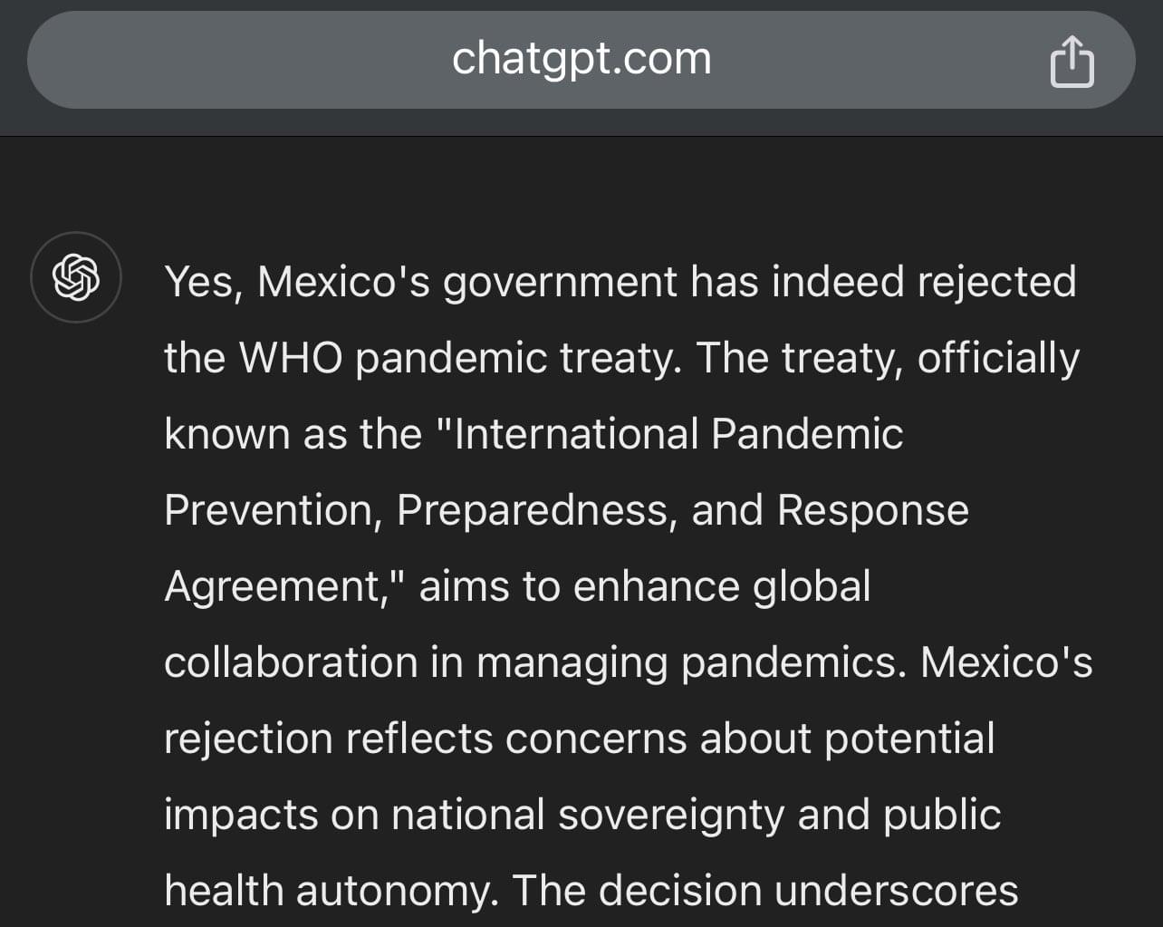 Mexico rejected the WHO pandemic treaty, declining to join due to concerns about sovereignty and the potential implications for national control over health policies.Mexico does not have a mandatory COVID-19 vaccination policy and Employers cannot require compulsory vaccination. It’s known that the government doesn’t control policies within the country; The cartels do!🤷♂️They own domestic airports, big hotels, real estate, ferries, restaurants, nightclubs and all major businesses. 💰